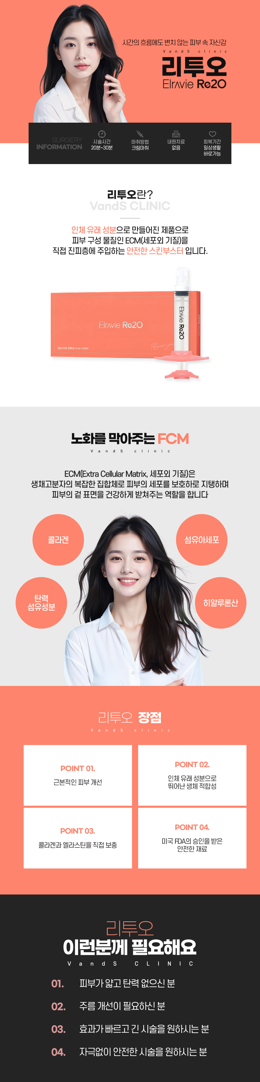 리투오(Re2O)는 순수 진피 성분으로 피부를 재생하는 ECM 부스터입니다.